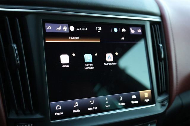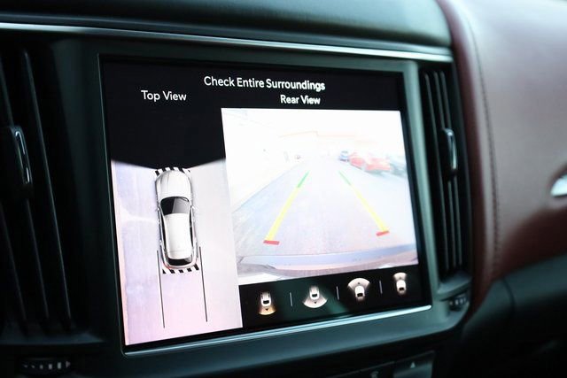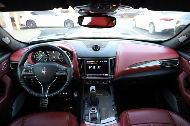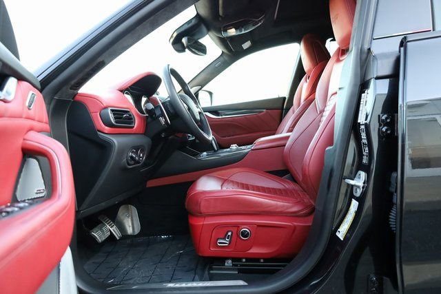 This Levante is well equipped with 3.8L V8 Twin Turbocharged, 12-Way Heated Power Sport Front Seats, 17 Speakers, 3.27 Axle Ratio, 3D Carbon Fiber Trim, 4-Wheel Disc Brakes, 4-Zone Automatic Climate Control, ABS brakes, Active Cruise Control, Adaptive suspension, Adjustable pedals, Air Conditioning, Alloy wheels, AM/FM radio: SiriusXM, Anti-whiplash front head restraints, Apple CarPlay/Android Auto, Auto High-beam Headlights, Auto-dimming door mirrors, Auto-dimming Rear-View mirror, Auto-leveling suspension, Automatic temperature control, Bowers & Wilkins 1280W Ultra Premium Audio System, Brake assist, Bumpers: body-color, Carbon Fiber Column-Mounted Paddle Shifters, Compass, Delay-off headlights, Door auto-latch, Driver door bin, Driver vanity mirror, Dual front impact airbags, Dual front side impact airbags, Electronic Stability Control, Emergency communication system: Maserati Connect, Exterior Parking Camera Rear, Four wheel independent suspension, Front anti-roll bar, Front Bucket Seats, Front Center Armrest, Front dual zone A/C, Front fog lights, Front reading lights, Garage door transmitter: HomeLink, Gloss Black Painted Brake Calipers, Heated door mirrors, Heated front seats, Heated rear seats, Heated steering wheel, High Gloss Metal Net Trim, Illuminated entry, Leather Shift Knob, Leather steering wheel, Low tire pressure warning, Memory seat, Navigation System, Occupant sensing airbag, Outside temperature display, Overhead airbag, Overhead console, Passenger door bin, Passenger vanity mirror, Pedal memory, Pieno Fiore Natural Leather Upholstery, Power door mirrors, Power driver seat, Power Liftgate, Power moonroof, Power passenger seat, Power steering, Power windows, Radio data system, Radio: AM/FM w/Maserati Intelligent Assistant, Rain sensing wipers, Rear anti-roll bar, Rear fog lights, Rear reading lights, Rear seat center armrest, Rear window defroster, Rear window wiper, Remote keyless entry, Security system, Speed control, Speed-sensing steering, Speed-Sensitive Wipers, Split folding rear seat, Spoiler, Sport steering wheel, Steering wheel memory, Steering wheel mounted audio controls, Tachometer, Telescoping steering wheel, Tilt steering wheel, Traction control, Trip computer, Turn signal indicator mirrors, Variably intermittent wipers, Ventilated Front Seats, Ventilated front seats, Voltmeter, and Wheels: 22" Painted Staggered Orione Miron.