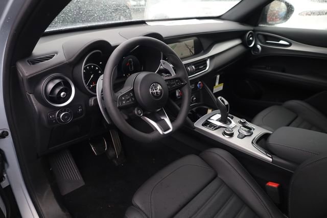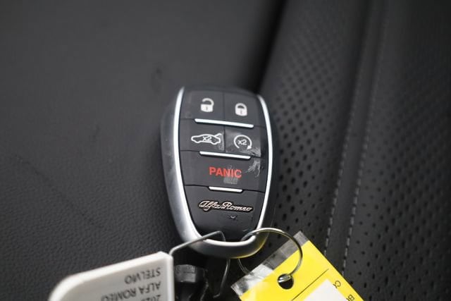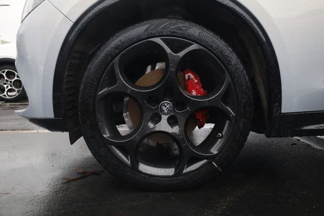 This Stelvio is well equipped with Convenience Package (Active Driving Assist System, Cargo Compartment Cover, Hands Free Power Liftgate, Intelligent Speed Assist (ISA), and Thatcham Security Equipment), Premium Interior & Audio Package (Driver Side I/P Storage Bin, harman/kardon Premium Audio, and Leather Dash & Upper Doors), Quick Order Package 22M Sprint, Veloce Package (DISC) (Front Strut Tower Brace, Gloss Red Calipers w/White Script, Limited Slip Differential Rear Axle, Power Adjust 8-Way Front Passenger Seat, Power Adjustable Bolster, Sport Leather Seats (DISC), Sport Rear Diffuser, and Volcano Black Body Kit), 4-Wheel Disc Brakes, 8 Speakers, ABS brakes, Air Conditioning, Alloy wheels, AM/FM radio: SiriusXM, Apple CarPlay/Android Auto, Auto High-beam Headlights, Auto-dimming door mirrors, Auto-dimming Rear-View mirror, Automatic temperature control, Brake assist, Bumpers: body-color, Compass, Delay-off headlights, Driver door bin, Driver vanity mirror, Dual front impact airbags, Dual front side impact airbags, Dual-Pane Sunroof, Electronic Stability Control, Emergency communication system: Alfa Connect, Four wheel independent suspension, Front anti-roll bar, Front Bucket Seats, Front Center Armrest, Front dual zone A/C, Front reading lights, Fully automatic headlights, Garage door transmitter, Gloss Black Roof Rails, Heated door mirrors, Heated front seats, Heated rear seats, Heated steering wheel, High-Intensity Discharge Headlights, Illuminated entry, Knee airbag, Lane Keep Assist, Leather Seats, Leather Shift Knob, Leather steering wheel, Low tire pressure warning, Manufacturer's Statement of Origin, Memory seat, Navigation System, Occupant sensing airbag, Outside temperature display, Overhead airbag, Overhead console, Panic alarm, ParkView Rear Back-Up Camera, Passenger door bin, Passenger vanity mirror, Power door mirrors, Power driver seat, Power Liftgate, Power passenger seat, Power steering, Power windows, Radio data system, Radio: AM/FM/HD 8.8" w/Navigation, Rain sensing wipers, Rear anti-roll bar, Rear audio controls, Rear fog lights, Rear reading lights, Rear seat center armrest, Rear window defroster, Rear window wiper, Remote keyless entry, Security system, Speed control, Speed-sensing steering, Speed-Sensitive Wipers, Split folding rear seat, Spoiler, Sport steering wheel, Steering wheel mounted audio controls, Tachometer, Telescoping steering wheel, Tilt steering wheel, Traction control, Traffic Sign Recognition, Trip computer, Turn signal indicator mirrors, Variably intermittent wipers, Wheels: 19" x 8.0" Sport 5-Hole Aluminum, and Wheels: 21" x 8.5" Dark 5-Hole Aluminum (DISC).