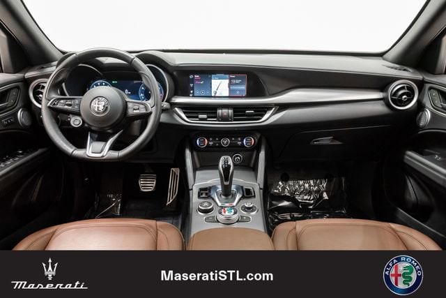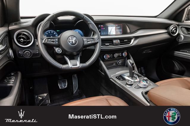 Beneath the sleek Vulcano Black Metallic exterior lies the heart of a true driver's machine. The turbocharged I4 engine, paired with an 8-Speed Automatic transmission and Alfa's renowned All-Wheel Drive system, delivers an exhilarating performance that will leave you craving the next open road.