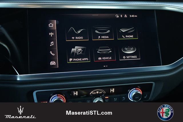 Boasting an impressive list of features, this Q3 is equipped to elevate your driving experience. - Located at Napleton's Mid Rivers Maserati - Audi smartphone interface (Apple CarPlay/Android Auto) - Power moonroof: Panoramic - Power Liftgate - Heated Front Bucket Seats. These carefully curated amenities are designed to provide you with unparalleled comfort, convenience, and connectivity, ensuring that every journey in this Q3 is a truly enjoyable one.