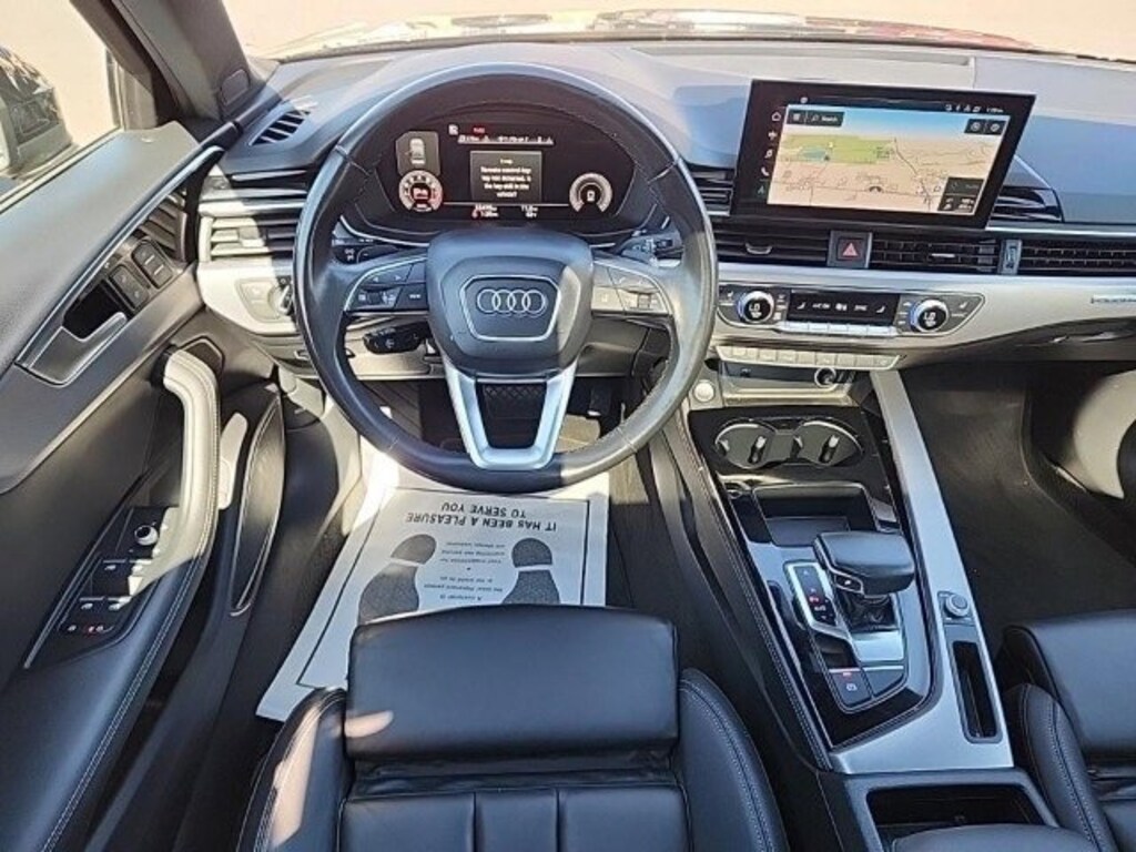 This A4 is well equipped with Black Optic Package (Aluminum Ellipse Dark Inlays, Black Audi Rings & Model Badge, Black Exterior Trim & Mirror Housings, Black Side Sill Blades & Rear Lip Spoiler, Dark Chrome Exhaust Tips, Red Brake Calipers, and Wheels: 18" 5-Arm Trapezoid Design Titanium Finish), Convenience Package (Adaptive Cruise Control, Alarm System w/Motion Sensor, Audi Advanced Key, Audi Side Assist w/Pre Sense Rear, Heated Steering Wheel, Memory for Driver's Seat, Parking System Plus, and SiriusXM w/360L), Navigation Package (Audi Connect PLUS and MMI Navigation Plus), Premium Plus Package (2 Rear USB Charge Ports, Audi Active Lane Assist, Audi Phone Box, Audi Virtual Cockpit Plus, Bang & Olufsen Sound System w/3D Sound, Hands-On Detection Steering Wheel, Leatherette Covered Center Console & Door Armrests, Power Folding Exterior Mirrors, Top View Camera System, and Traffic Jam Assist), 10 Speakers, 4-Wheel Disc Brakes, ABS brakes, Air Conditioning, Alloy wheels, AM/FM radio, Anti-whiplash front head restraints, Audi Beam-Rings, Audi Guard Protection Kit, Audi Guard Wheel Lock Kit, Audi smartphone interface (Apple CarPlay/Android Auto), Auto High-beam Headlights, Auto-dimming Rear-View mirror, Automatic temperature control, Brake assist, Bumpers: body-color, Compass, Delay-off headlights, Driver door bin, Driver vanity mirror, Dual front impact airbags, Dual front side impact airbags, Electronic Stability Control, Emergency communication system: Audi connect CARE, Exterior Parking Camera Rear, Four wheel independent suspension, Front anti-roll bar, Front Bucket Seats, Front Center Armrest, Front dual zone A/C, Front fog lights, Front reading lights, Garage door transmitter: HomeLink, Genuine wood dashboard insert, Genuine wood door panel insert, Heated door mirrors, Heated front seats, Heated Front Sport Bucket Seats, Illuminated entry, Integrated Toll Module Delete (DISC), Knee airbag, Leather Seating Surfaces, Leather Shift Knob, Leather steering wheel, Low tire pressure warning, Navigation System, Occupant sensing airbag, Outside temperature display, Overhead airbag, Overhead console, Panic alarm, Passenger door bin, Passenger vanity mirror, Power door mirrors, Power driver seat, Power moonroof, Power passenger seat, Power steering, Power windows, Radio data system, Radio: Audi Sound System, Rain sensing wipers, Rear air conditioning, Rear anti-roll bar, Rear reading lights, Rear seat center armrest, Rear window defroster, Remote keyless entry, Speed control, Speed-sensing steering, Speed-Sensitive Wipers, Split folding rear seat, Steering wheel mounted audio controls, Tachometer, Telescoping steering wheel, Tilt steering wheel, Traction control, Trip computer, Turn signal indicator mirrors, Variably intermittent wipers, and Wheels: 18" 5-Double-Spoke Design.