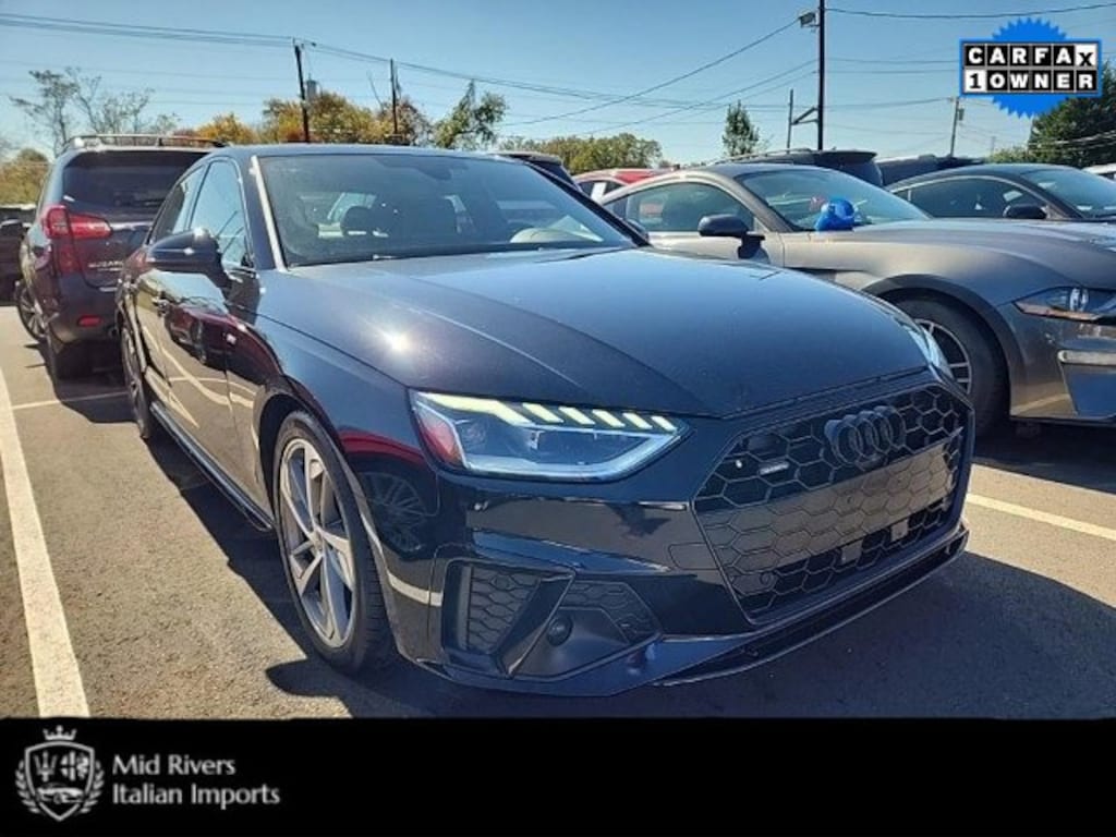 Recent Arrival! CARFAX One-Owner. Black Metallic 2023 Audi A4 45 S line Premium Plus quattro quattro 7-Speed Automatic S tronic 2.0L TFSI