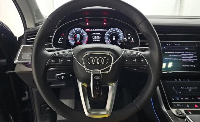 For added convenience and safety, this Q7 is equipped with a host of advanced technologies, including a Top View Camera System, Traffic Sign Recognition, and Audi connect CARE for emergency communication. The Black Optic Package further enhances the vehicle's bold, sophisticated appearance with 20-inch wheels, black exterior trim, and a sleek, blacked-out aesthetic.