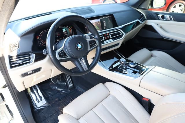 This X5 is well equipped with Connected Package Pro, Executive Package (DISC) (4-Zone Automatic Climate Control, Enhanced USB & Bluetooth, Gesture Control, Glass Controls, harman/kardon Surround Sound System (DISC), Head-Up Display, Icon Adaptive LED Headlights w/Laserlight, Panoramic Sky Lounge LED Roof, Rear Manual Side Window Shades, Remote Engine Start, and Wireless Charging), Luxury Seating Package 2 (Front Massaging Seats, Front Ventilated Seats, and Multi-Contour Seats), M Sport Package (Adaptive M Suspension, Aerodynamic Kit, High-Gloss Shadowline Roof Rails, M Steering Wheel, Shadowline Exterior Trim, Vernasca Leather Upholstery (MC), Wheels: 20" x 9" M Star-Spoke Bi-Color, and Without Lines Designation Outside), M Sport Package (337), 10 Speakers, 4-Wheel Disc Brakes, ABS brakes, Air Conditioning, Alloy wheels, AM/FM radio: SiriusXM with 360L, AM/FM Stereo, Apple CarPlay & Android Auto Compatibility, Apple CarPlay Compatibility, Auto High-beam Headlights, Auto tilt-away steering wheel, Auto-dimming door mirrors, Auto-dimming Rear-View mirror, Automatic temperature control, Axle Ratio: 3.385, BMW Assist eCall, BMW TeleServices, Brake assist, Bumpers: body-color, Compass, ConnectedDrive Services, Delay-off headlights, Driver door bin, Driver vanity mirror, Dual front impact airbags, Dual front side impact airbags, Electronic Stability Control, Emergency communication system: BMW Assist eCall, Exterior Parking Camera Rear, Four wheel independent suspension, Front & Rear Heated Seats, Front anti-roll bar, Front Bucket Seats, Front Center Armrest, Front dual zone A/C, Front fog lights, Front Massaging Seats (DISC), Front reading lights, Fully automatic headlights, Garage door transmitter, Genuine wood console insert, Genuine wood dashboard insert, Genuine wood door panel insert, Head restraints memory, Heated door mirrors, Heated Front Seats, Heated front seats, Heated Front Seats w/Armrests & Steering Wheel, Hi-Fi Sound System, Illuminated entry, Increased Top Speed Limiter, Knee airbag, Leather Shift Knob, Leather steering wheel, Live Cockpit Pro w/Navigation, Low tire pressure warning, Lumbar Support, Memory seat, Navigation System, Occupant sensing airbag, Outside temperature display, Overhead airbag, Panic alarm, Passenger door bin, Passenger vanity mirror, Power adjustable front head restraints, Power door mirrors, Power driver seat, Power Front Seats, Power moonroof, Power passenger seat, Power steering, Power windows, Radio data system, Rain sensing wipers, Rear air conditioning, Rear anti-roll bar, Rear reading lights, Rear seat center armrest, Rear window defroster, Rear window wiper, Remote keyless entry, Roof rack: rails only, Security system, SensaTec Upholstery, SiriusXM Satellite Radio w/360L, Speed control, Speed-sensing steering, Speed-Sensitive Wipers, Split folding rear seat, Spoiler, Sport Seats, Sport steering wheel, Steering wheel memory, Steering wheel mounted audio controls, Tachometer, Telescoping steering wheel, Tilt steering wheel, Traction control, Trip computer, Turn signal indic