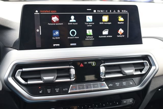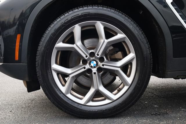 This X3 is well equipped with Convenience Package w/ZPA (Lumbar Support and Panoramic Moonroof (ZPA)), Apple CarPlay & Android Auto Compatibility, Exterior Parking Camera Rear, Power Liftgate, 12 Speakers, 3.385 Axle Ratio, 4-Wheel Disc Brakes, ABS brakes, Air Conditioning, Alloy wheels, AM/FM Radio, AM/FM radio: SiriusXM with 360L, Auto High-beam Headlights, Auto-dimming door mirrors, Auto-dimming Rear-View mirror, Automatic temperature control, BMW Assist eCall, BMW TeleServices, Brake assist, Bumpers: body-color, ConnectedDrive Services, Delay-off headlights, Driver door bin, Driver vanity mirror, Dual front impact airbags, Dual front side impact airbags, Electronic Stability Control, Emergency communication system: BMW Assist eCall, Enhanced Bluetooth, Four wheel independent suspension, Front anti-roll bar, Front Bucket Seats, Front Center Armrest, Front dual zone A/C, Front reading lights, Fully automatic headlights, Garage door transmitter, Genuine wood dashboard insert, Genuine wood door panel insert, Heated door mirrors, Hi-Fi Sound System, Illuminated entry, Knee airbag, Low tire pressure warning, Memory seat, Navigation, Navigation System, Occupant sensing airbag, Outside temperature display, Overhead airbag, Panic alarm, Passenger door bin, Passenger vanity mirror, Perforated SensaTec Upholstery, Power door mirrors, Power driver seat, Power Front Seats, Power passenger seat, Power steering, Power windows, Radio data system, Rain sensing wipers, Rear air conditioning, Rear anti-roll bar, Rear reading lights, Rear seat center armrest, Rear window defroster, Rear window wiper, Remote keyless entry, Roof rack: rails only, Security system, SiriusXM w/360L, Speed control, Speed-sensing steering, Speed-Sensitive Wipers, Split folding rear seat, Spoiler, Sport Seats, Sport steering wheel, Steering wheel mounted audio controls, Tachometer, Telescoping steering wheel, Tilt steering wheel, Traction control, Trip computer, Turn signal indicator mirrors, Variably intermittent wipers, Wheels: 19" x 7.5" Y-Spoke (Style 693), and WiFi Hotspot.