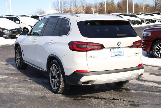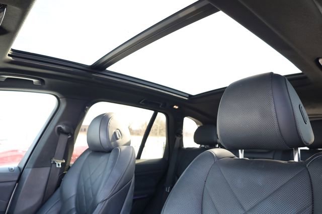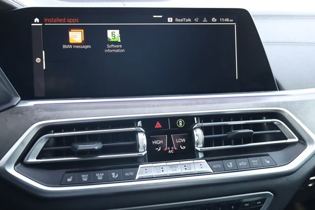 This X5 is well equipped with Connected Package Pro, 10 Speakers, 3.39 Axle Ratio, 4-Wheel Disc Brakes, ABS brakes, Air Conditioning, Alloy wheels, AM/FM radio: SiriusXM with 360L, AM/FM Stereo, Auto High-beam Headlights, Auto tilt-away steering wheel, Auto-dimming door mirrors, Auto-dimming Rear-View mirror, Automatic temperature control, BMW Assist eCall, BMW TeleServices, Brake assist, Bumpers: body-color, Compass, ConnectedDrive Services, Delay-off headlights, Driver door bin, Driver vanity mirror, Dual front impact airbags, Dual front side impact airbags, Electronic Stability Control, Emergency communication system: BMW Assist eCall, Enhanced USB & Bluetooth w/Smartphone Integration, Exterior Parking Camera Rear, Four wheel independent suspension, Front anti-roll bar, Front Bucket Seats, Front Center Armrest, Front dual zone A/C, Front reading lights, Fully automatic headlights, Garage door transmitter, Genuine wood console insert, Genuine wood dashboard insert, Genuine wood door panel insert, Head restraints memory, Heated door mirrors, Heated Front Seats, Heated front seats, Hi-Fi Sound System, Illuminated entry, Knee airbag, Leather Shift Knob, Leather steering wheel, Live Cockpit Pro w/Navigation, Low tire pressure warning, Lumbar Support, Memory seat, Navigation System, Occupant sensing airbag, Outside temperature display, Overhead airbag, Panic alarm, Passenger door bin, Passenger vanity mirror, Power adjustable front head restraints, Power door mirrors, Power driver seat, Power Front Seats, Power moonroof, Power passenger seat, Power steering, Power windows, Radio data system, Rain sensing wipers, Rear anti-roll bar, Rear reading lights, Rear seat center armrest, Rear window defroster, Rear window wiper, Remote keyless entry, Security system, Sensafin Upholstery, Speed control, Speed-sensing steering, Speed-Sensitive Wipers, Split folding rear seat, Spoiler, Sport Seats, Sport steering wheel, Steering wheel mounted audio controls, Tachometer, Telescoping steering wheel, Tilt steering wheel, Traction control, Trip computer, Turn signal indicator mirrors, Variably intermittent wipers, and Wheels: 19" x 9" V-Spoke.