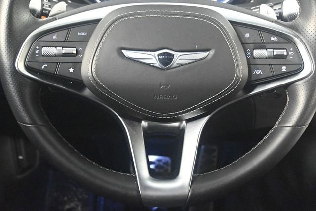 This GV70 is well equipped with Sport Advanced Package (Blind-Spot View Monitor, Forward/Reverse Parking Distance Warning, Genesis Digital Key, Leatherette Wrapped Upper Instrument Panel, Lexicon Premium Audio, Microfiber Suede Headliner, Nappa Leather Seating Surfaces, Option Group 05, Remote Smart Parking Assist, Reverse Parking Collision-Avoidance Assist, Surround View Monitor, and Wheels: 21" Dark Sputtering Sport Alloy), ABS brakes, Alloy wheels, Electronic Stability Control, Front dual zone A/C, Heated & Ventilated Front Bucket Seats, Heated door mirrors, Heated front seats, Illuminated entry, Low tire pressure warning, Navigation System, Power Liftgate, Power moonroof, Remote keyless entry, Traction control, 3.909 Axle Ratio, 4-Wheel Disc Brakes, 9 Speakers, Active Cruise Control, Adaptive suspension, Air Conditioning, AM/FM radio: SiriusXM, Android Auto & Apple CarPlay, Anti-whiplash front head restraints, Auto High-beam Headlights, Auto-dimming door mirrors, Auto-dimming Rear-View mirror, Automatic temperature control, Brake assist, Bumpers: body-color, Delay-off headlights, Driver door bin, Driver vanity mirror, Dual front impact airbags, Dual front side impact airbags, Emergency communication system: Genesis Connected Services, Exterior Parking Camera Rear, Four wheel independent suspension, Front anti-roll bar, Front Bucket Seats, Front Center Armrest w/Storage, Front reading lights, Fully automatic headlights, Garage door transmitter: HomeLink, Heated steering wheel, Knee airbag, Leather Seating Surfaces w/Mesh Insert, Memory seat, Occupant sensing airbag, Outside temperature display, Overhead airbag, Overhead console, Panic alarm, Passenger door bin, Passenger vanity mirror, Power door mirrors, Power driver seat, Power passenger seat, Power steering, Power windows, Radio: 14.5" Navigation System w/AM/FM/HD Radio, Rain sensing wipers, Rear anti-roll bar, Rear Parking Sensors, Rear reading lights, Rear seat center armrest, Rear window defroster, Rear window wiper, Security system, Speed control, Speed-sensing steering, Speed-Sensitive Wipers, Split folding rear seat, Spoiler, Steering wheel memory, Steering wheel mounted audio controls, Tachometer, Telescoping steering wheel, Trip computer, Turn signal indicator mirrors, Variably intermittent wipers, Ventilated front seats, and Wheels: 19" Dark Hyper Silver Sport Alloy.