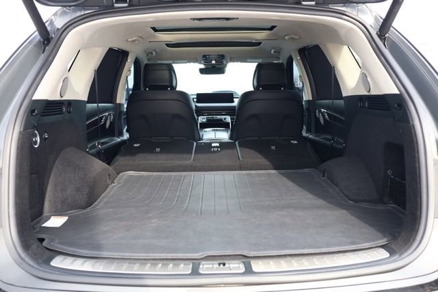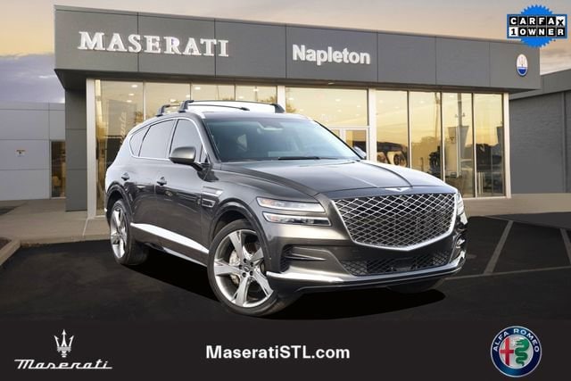 This GV80 is well equipped with Prestige Package (3-Zone Climate Control, Blind-Spot View Monitor, Ergo Motion Driver Seat, Head-Up Display, Heated 2nd Row Seats, Option Group 06, Power Cushion Extension & Bolster, Radio: AM/FM/SiriusXM/HD Lexicon Prem Audio System, Remote Smart Parking Assist, Reverse Parking Collision-Avoidance Assist, and Surround View Monitor), ABS brakes, Active Cruise Control, Alloy wheels, Compass, Electronic Stability Control, Front dual zone A/C, Heated & Ventilated Front Bucket Seats, Heated door mirrors, Heated front seats, Illuminated entry, Low tire pressure warning, Power Liftgate, Power moonroof, Remote keyless entry, Traction control, 12 Speakers, 3.909 Axle Ratio, 4-Wheel Disc Brakes, Adaptive suspension, Air Conditioning, AM/FM radio: SiriusXM, Android Auto & Apple CarPlay, Anti-whiplash front head restraints, Auto High-beam Headlights, Auto tilt-away steering wheel, Auto-dimming door mirrors, Auto-dimming Rear-View mirror, Automatic temperature control, Brake assist, Bumpers: body-color, Delay-off headlights, Driver door bin, Driver vanity mirror, Dual front impact airbags, Dual front side impact airbags, Emergency communication system: Genesis Connected Services, Exterior Parking Camera Rear, Four wheel independent suspension, Front anti-roll bar, Front Bucket Seats, Front Center Armrest, Front reading lights, Fully automatic headlights, Garage door transmitter: HomeLink, Genuine wood console insert, Genuine wood dashboard insert, Genuine wood door panel insert, Heated steering wheel, Knee airbag, Leather steering wheel, Leatherette Seating Surfaces, Memory seat, Navigation System, Occupant sensing airbag, Outside temperature display, Overhead airbag, Overhead console, Panic alarm, Passenger door bin, Passenger vanity mirror, Power door mirrors, Power driver seat, Power passenger seat, Power steering, Power windows, Radio data system, Radio:14.5" Navigation System w/AM/FM/HD Radio, Rain sensing wipers, Rear air conditioning, Rear anti-roll bar, Rear reading lights, Rear seat center armrest, Rear side impact airbag, Rear window defroster, Rear window wiper, Security system, Speed control, Speed-sensing steering, Speed-Sensitive Wipers, Split folding rear seat, Spoiler, Steering wheel memory, Steering wheel mounted audio controls, Tachometer, Telescoping steering wheel, Tilt steering wheel, Trip computer, Turn signal indicator mirrors, Variably intermittent wipers, Ventilated front seats, and Wheels: 20" x 8.5J Medium Metallic Gray Alloy.