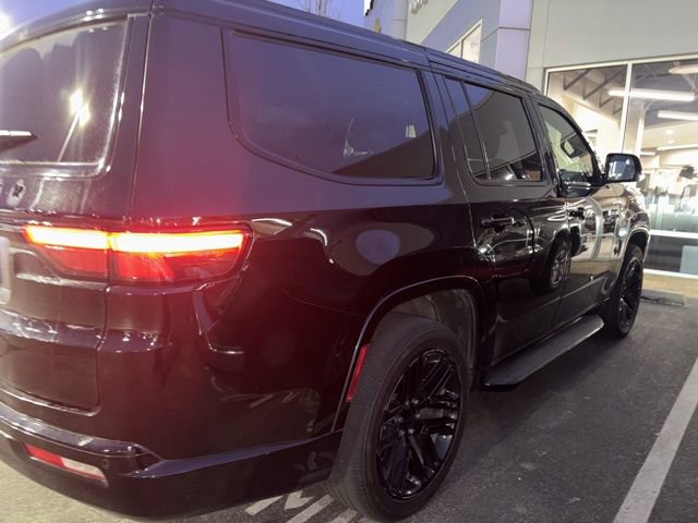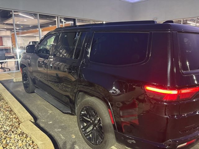 This Wagoneer is well equipped with Carbide Appearance Package, Convenience Group I (2nd Row Manual Window Shades, Active Lane Management System, Adaptive Cruise Control w/Stop & Go, Auto High Beam Headlamp Control, Heated Second Row Seats, Memory Steering Column, P&P Park & Unpark Assist w/Stop System, Rain Sensitive Windshield Wipers, Surround View Camera System, and Wireless Charging Pad), Quick Order Package 22F Carbide (3 Panel Sunroof, Adjustable Roof Rail Crossbars, Black Interior Accents, Cargo Cover, Piano Black Exterior Accents, Reversible Carpet/Vinyl Cargo Mat, and Wheels: 22" x 9.0" Painted Gloss Black), 10 Speakers, 3.21 Rear Axle Ratio, 3rd row seats: bench, 4-Wheel Disc Brakes, ABS brakes, Adjustable pedals, Air Conditioning, Alloy wheels, AM/FM radio: SiriusXM with 360L, Anti-whiplash front head restraints, Audio memory, Auto-dimming door mirrors, Auto-dimming Rear-View mirror, Auto-leveling suspension, Automatic temperature control, Brake assist, Bumpers: body-color, Compass, Delay-off headlights, Driver door bin, Driver vanity mirror, Driver's Seat Mounted Armrest, Dual front impact airbags, Dual front side impact airbags, Electronic Stability Control, Exterior Parking Camera Rear, Four wheel independent suspension, Front anti-roll bar, Front Bucket Seats, Front Center Armrest w/Storage, Front dual zone A/C, Front fog lights, Front reading lights, Fully automatic headlights, Garage door transmitter, Heated door mirrors, Heated front seats, Heated steering wheel, Illuminated entry, Knee airbag, Leather Trimmed Bucket Seats, Low tire pressure warning, Memory seat, Navigation System, Normal Duty Suspension, Occupant sensing airbag, Outside temperature display, Overhead airbag, Overhead console, Panic alarm, Passenger door bin, Passenger seat mounted armrest, Passenger vanity mirror, Pedal memory, Power adjustable front head restraints, Power door mirrors, Power driver seat, Power Liftgate, Power passenger seat, Power steering, Power windows, Radio data system, Radio: Uconnect 5 Nav w/10.1" Display, Rear air conditioning, Rear anti-roll bar, Rear dual zone A/C, Rear reading lights, Rear seat center armrest, Rear window defroster, Rear window wiper, Reclining 3rd row seat, Remote keyless entry, Security system, Speed control, Speed-sensing steering, Speed-Sensitive Wipers, Split folding rear seat, Steering wheel memory, Steering wheel mounted audio controls, Tachometer, Telescoping steering wheel, Tilt steering wheel, Traction control, Trip computer, Turn signal indicator mirrors, Variably intermittent wipers, Ventilated front seats, Voltmeter, and Wheels: 18" x 8.0" Aluminum Base Finish.