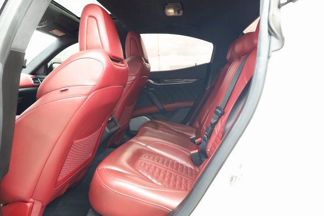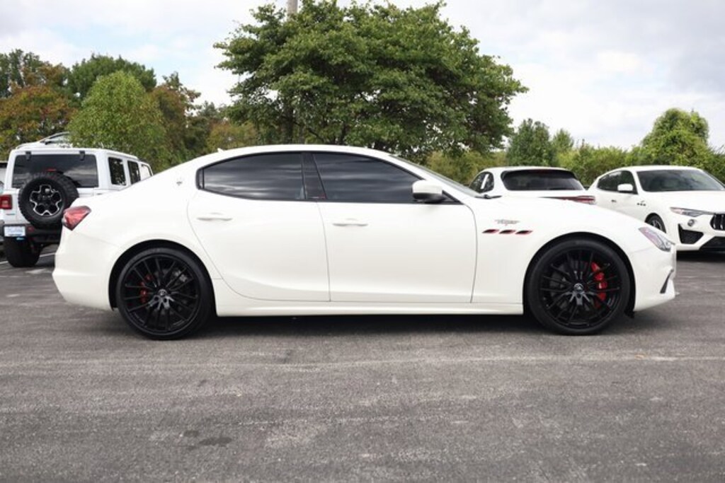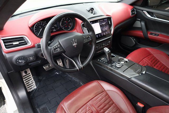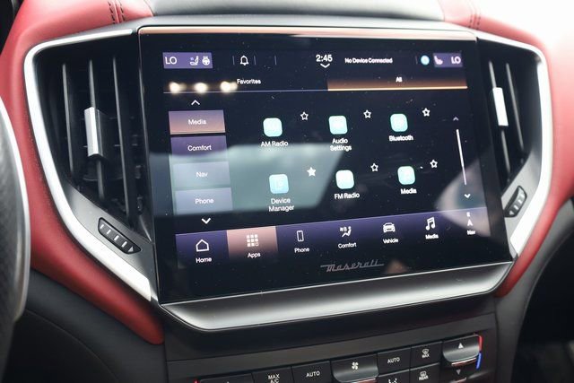 This Ghibli is well equipped with 10 Speakers, 12-Way Power Heated Front Sport Seats, 4-Wheel Disc Brakes, ABS brakes, Adaptive suspension, Air Conditioning, Alloy wheels, Aluminum Column-Mounted Paddle Shifters, AM/FM radio: SiriusXM, Anti-whiplash front head restraints, Apple CarPlay/Android Auto, Auto High-beam Headlights, Auto-dimming door mirrors, Auto-dimming Rear-View mirror, Automatic temperature control, Brake assist, Bumpers: body-color, Compass, Delay-off headlights, Door auto-latch, Driver door bin, Driver vanity mirror, Dual front impact airbags, Dual front side impact airbags, Electronic Stability Control, Emergency communication system: Maserati Connect, Exterior Parking Camera Rear, Four wheel independent suspension, Front anti-roll bar, Front Bucket Seats, Front Center Armrest w/Storage, Front dual zone A/C, Front reading lights, Garage door transmitter: HomeLink, harman/kardon® Speakers, harmon/kardon 900 Watts Premium Audio System, Heated door mirrors, Heated front seats, Heated steering wheel, Illuminated entry, Knee airbag, Leather Shift Knob, Leather steering wheel, Low tire pressure warning, Memory seat, Navigation System, Occupant sensing airbag, Outside temperature display, Overhead airbag, Overhead console, Panic alarm, Passenger door bin, Passenger vanity mirror, Pieno Fiore Natural Leather Upholstery, Power door mirrors, Power driver seat, Power moonroof, Power passenger seat, Power steering, Power windows, Radio data system, Radio: AM/FM w/Maserati Intelligent Assistant, Rain sensing wipers, Rear anti-roll bar, Rear fog lights, Rear reading lights, Rear seat center armrest, Rear window defroster, Remote keyless entry, Security system, Speed control, Speed-sensing steering, Speed-Sensitive Wipers, Split folding rear seat, Sport steering wheel, Steering wheel memory, Steering wheel mounted audio controls, Tachometer, Telescoping steering wheel, Tilt steering wheel, Traction control, Trip computer, Trofeo Logo Stitched in Front & Rear Headrests, Turn signal indicator mirrors, Variably intermittent wipers, Ventilated Front Seats, Ventilated front seats, Voltmeter, and Wheels: 21" Orione Forged Polished Black.