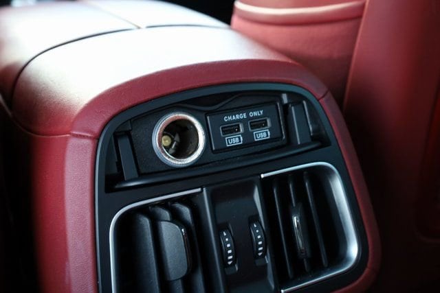 This Levante is well equipped with 12-Way Heated Power Sport Front Seats, 17 Speakers, 3.27 Axle Ratio, 4-Wheel Disc Brakes, ABS brakes, Adaptive suspension, Adjustable pedals, Air Conditioning, Alloy wheels, AM/FM radio: SiriusXM, Anti-whiplash front head restraints, Apple CarPlay/Android Auto, Auto High-beam Headlights, Auto-dimming door mirrors, Auto-dimming Rear-View mirror, Auto-leveling suspension, Automatic temperature control, Bowers & Wilkins 1280W Ultra Premium Audio System, Brake assist, Bumpers: body-color, Compass, Delay-off headlights, Door auto-latch, Driver door bin, Driver vanity mirror, Dual front impact airbags, Dual front side impact airbags, Electronic Stability Control, Emergency communication system: Maserati Connect, Exterior Parking Camera Rear, Four wheel independent suspension, Front anti-roll bar, Front Bucket Seats, Front Center Armrest, Front dual zone A/C, Front fog lights, Front reading lights, Garage door transmitter: HomeLink, Heated door mirrors, Heated front seats, Heated rear seats, Heated steering wheel, Illuminated entry, Leather Shift Knob, Leather steering wheel, Low tire pressure warning, Memory seat, Navigation System, Occupant sensing airbag, Outside temperature display, Overhead airbag, Overhead console, Passenger door bin, Passenger vanity mirror, Pedal memory, Pieno Fiore Natural Leather Upholstery, Power door mirrors, Power driver seat, Power Liftgate, Power moonroof, Power passenger seat, Power steering, Power windows, Radio data system, Radio: AM/FM w/Maserati Intelligent Assistant, Rain sensing wipers, Rear anti-roll bar, Rear fog lights, Rear reading lights, Rear seat center armrest, Rear window defroster, Rear window wiper, Remote keyless entry, Security system, Speed control, Speed-sensing steering, Speed-Sensitive Wipers, Split folding rear seat, Spoiler, Sport steering wheel, Steering wheel memory, Steering wheel mounted audio controls, Tachometer, Telescoping steering wheel, Tilt steering wheel, Traction control, Trip computer, Turn signal indicator mirrors, Variably intermittent wipers, Ventilated Front Seats, Ventilated front seats, Voltmeter, and Wheels: 22" Mach Polished Staggered Orione Miron.