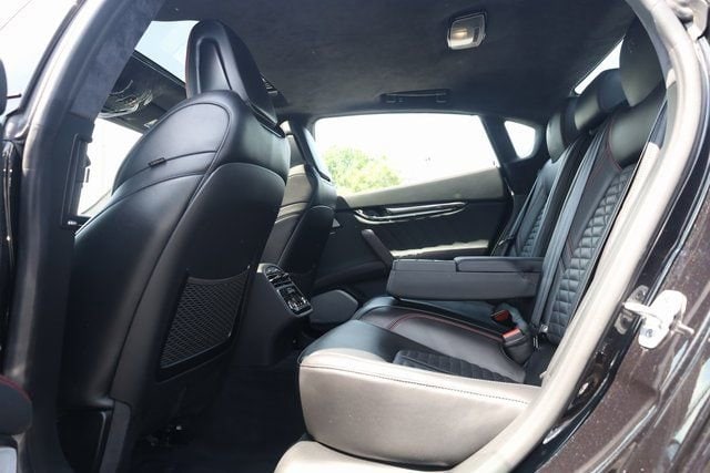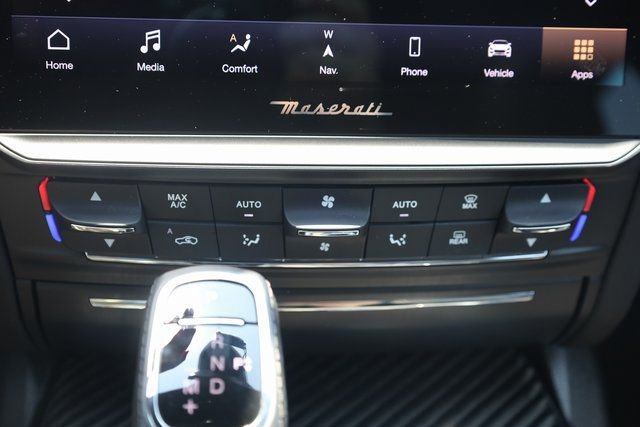 This Quattroporte is well equipped with Exterior Carbon Fiber Package, Interior Carbon Fiber Package (Door Sills and Paddle Shifters), 10 Speakers, 4-Wheel Disc Brakes, ABS brakes, Adaptive suspension, Adjustable pedals, Air Conditioning, Alloy wheels, AM/FM radio: SiriusXM, Anti-whiplash front head restraints, Apple CarPlay/Android Auto, Auto High-beam Headlights, Auto tilt-away steering wheel, Auto-dimming door mirrors, Auto-dimming Rear-View mirror, Automatic temperature control, Brake assist, Bumpers: body-color, Delay-off headlights, Door auto-latch, Driver door bin, Driver vanity mirror, Dual front impact airbags, Dual front side impact airbags, Electronic Stability Control, Emergency communication system: Maserati Connect, Exterior Parking Camera Rear, Four wheel independent suspension, Front anti-roll bar, Front Bucket Seats, Front Center Armrest, Front dual zone A/C, Front reading lights, Garage door transmitter, harman/kardon® Speakers, Heated door mirrors, Heated front seats, Heated Front Sport Seats, Heated steering wheel, Illuminated entry, Knee airbag, Leather Shift Knob, Leather steering wheel, Low tire pressure warning, Memory seat, Navigation System, Occupant sensing airbag, Outside temperature display, Overhead airbag, Overhead console, Passenger door bin, Passenger vanity mirror, Pedal memory, Pieno Fiore Full Natural Leather Seat Upholstery, Power door mirrors, Power driver seat, Power moonroof, Power passenger seat, Power steering, Power windows, Radio data system, Radio: AM/FM w/Maserati Intelligent Assistant, Rain sensing wipers, Rear anti-roll bar, Rear fog lights, Rear reading lights, Rear seat center armrest, Rear Window Blind, Rear window defroster, Remote keyless entry, Security system, Speed control, Speed-sensing steering, Speed-Sensitive Wipers, Split folding rear seat, Sport steering wheel, Steering wheel memory, Steering wheel mounted audio controls, Tachometer, Telescoping steering wheel, Tilt steering wheel, Traction control, Trip computer, Turn signal indicator mirrors, Variably intermittent wipers, Ventilated Front Seats, Ventilated front seats, Voltmeter, Wheels: 21" Orione Forged Polished Black, and Zegna Pelletessuta Leather Seat Upholstery.