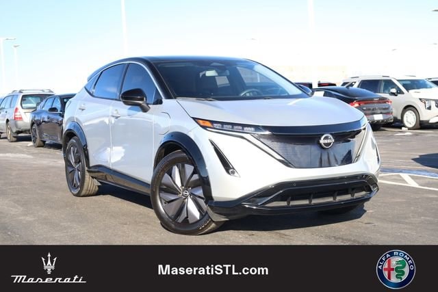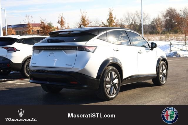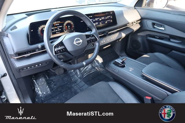 This Ariya is well equipped with 11.090 Final Drive Ratio, 19" Alloy Wheels, 4-Wheel Disc Brakes, 6 Speakers, ABS brakes, Air Conditioning, Alloy wheels, AM/FM radio: SiriusXM, Auto High-beam Headlights, Automatic temperature control, Brake assist, Bumpers: body-color, Carpeted Floor Mats & First Aid Kit, Delay-off headlights, Driver door bin, Driver vanity mirror, Dual front impact airbags, Dual front side impact airbags, Electronic Stability Control, Emergency communication system: NissanConnect EV & Services, Four wheel independent suspension, Front anti-roll bar, Front Bucket Seats, Front Center Armrest, Front dual zone A/C, Front reading lights, Heads-Up Display, Heated door mirrors, Heated Front Bucket Seats, Heated front seats, Heated rear seats, Heated steering wheel, Illuminated entry, Knee airbag, Leather steering wheel, Leatherette Seating Surfaces, Low tire pressure warning, Memory seat, Navigation system: Nissan Door to Door Connected Navigation, Occupant sensing airbag, Outside temperature display, Overhead airbag, Panic alarm, Passenger door bin, Passenger vanity mirror, Power door mirrors, Power driver seat, Power steering, Power windows, Radio: AM/FM Audio System, Rear anti-roll bar, Rear reading lights, Rear seat center armrest, Rear side impact airbag, Rear window defroster, Rear window wiper, Remote keyless entry, Security system, Speed control, Speed-sensing steering, Speed-Sensitive Wipers, Split folding rear seat, Spoiler, Steering wheel mounted audio controls, Telescoping steering wheel, Tilt steering wheel, Traction control, Trip computer, and Variably intermittent wipers.