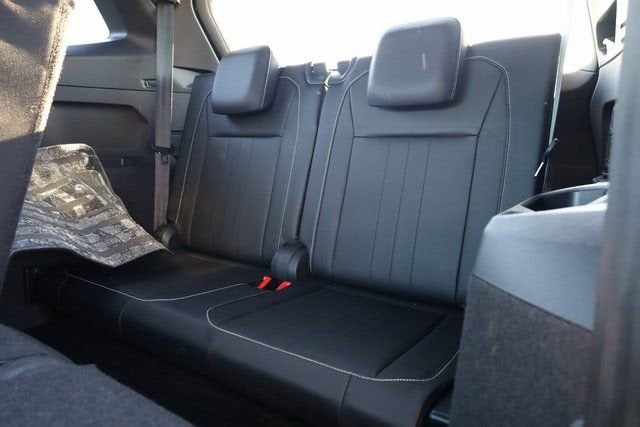 This Tiguan is well equipped with 3-Row Rubber Monster Mats w/Logo Kit (Set of 5), 3.33 Axle Ratio, 3rd row seats: bench, 4-Wheel Disc Brakes, 4-Wheel Independent Suspension, 6 Speakers, ABS brakes, Air Conditioning, Alloy wheels, AM/FM radio: SiriusXM with 360L, Auto-dimming Rear-View mirror, Auto-Dimming Rearview Mirror w/Compass/HomeLink (DISC), Automatic temperature control, Brake assist, Bumpers: body-color, Cargo Area Retractable Privacy Cover, Compass, Credit - Power Rear Liftgate Removed, Credit - Steering Wheel Substitution, Delay-off headlights, Driver door bin, Driver vanity mirror, Dual front impact airbags, Dual front side impact airbags, Electronic Stability Control, Emergency communication system: VW Car-Net Safe & Secure 5-year, Exterior Parking Camera Rear, First Aid Kit, Four wheel independent suspension, Front anti-roll bar, Front Bucket Seats, Front Center Armrest, Front dual zone A/C, Front reading lights, Fully automatic headlights, Heated door mirrors, Heated Front Comfort Seats, Heated front seats, Heavy Duty Trunk Liner w/VW CarGo Blocks, Illuminated entry, Leather Shift Knob, Leather steering wheel, Low tire pressure warning, Occupant sensing airbag, Outside temperature display, Overhead airbag, Overhead console, Panic alarm, Passenger door bin, Passenger vanity mirror, Perforated V-Tex Leatherette Seating Surfaces, Power door mirrors, Power driver seat, Power Liftgate, Power moonroof, Power steering, Power windows, Radio data system, Radio: MIB3 Composition Media AM/FM/HD, Rain sensing wipers, Rear anti-roll bar, Rear reading lights, Rear seat center armrest, Rear window defroster, Rear window wiper, Remote keyless entry, Roadside Assistance Kit, Roof Rack Base Carrier Bars (Set of 2), Security system, Speed control, Speed-sensing steering, Split folding rear seat, Spoiler, Sport steering wheel, Steering wheel mounted audio controls, Tachometer, Telescoping steering wheel, Tilt steering wheel, Traction control, Trip computer, Turn signal indicator mirrors, Variably intermittent wipers, VW Care, and Wheels: 19" Black Painted Twin 5-Spoke Alloy.